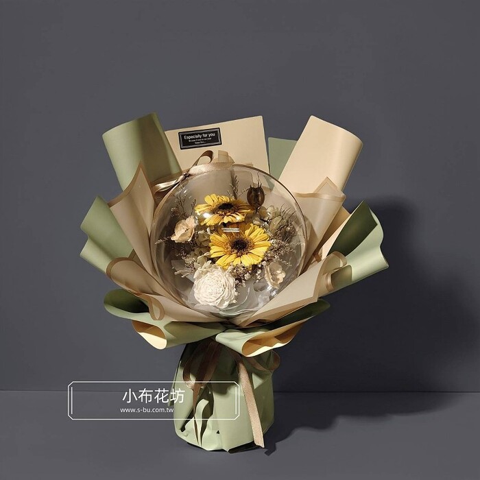 J5054 波波球向日葵永生花束